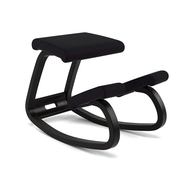 Variable ist in natur- oder schwarz lackierter Oberfläche und einer Reihe von Bezugsstoffen und Farben erhältlich. Die geschwungenen Kufen bestehen aus Buchen- und Eschensperrholz. Die Schaukelfunktion folgt der natürlichen Bewegung des Körpers und fördert eine natürliche und aufrechte Körperhaltung. Die Verspannungen im Nacken- und Schulterbereich werden dadurch vorgebeugt und gleichzeitig stärkt das Wippen die Rumpf- und Bauchmuskulatur.